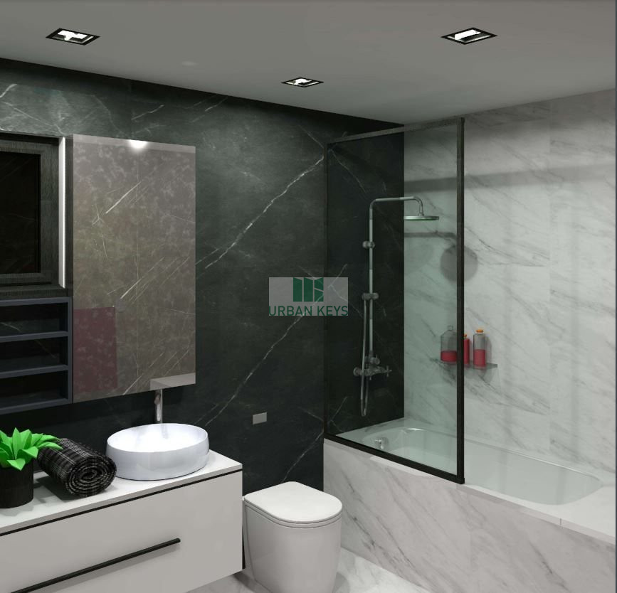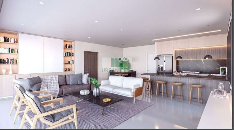 The apartment will offer provisions for air-conditioning split units and central underfloor heating, along with parquet flooring and stylish interiors. The open-plan living space is both functional and attractive.