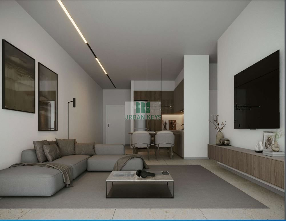 The apartment will offer provisions for air-conditioning split units and central underfloor heating, along with parquet flooring and stylish interiors. The open-plan living space is both functional and attractive.