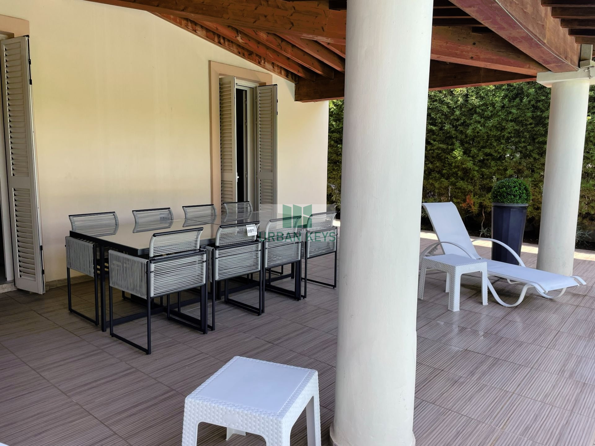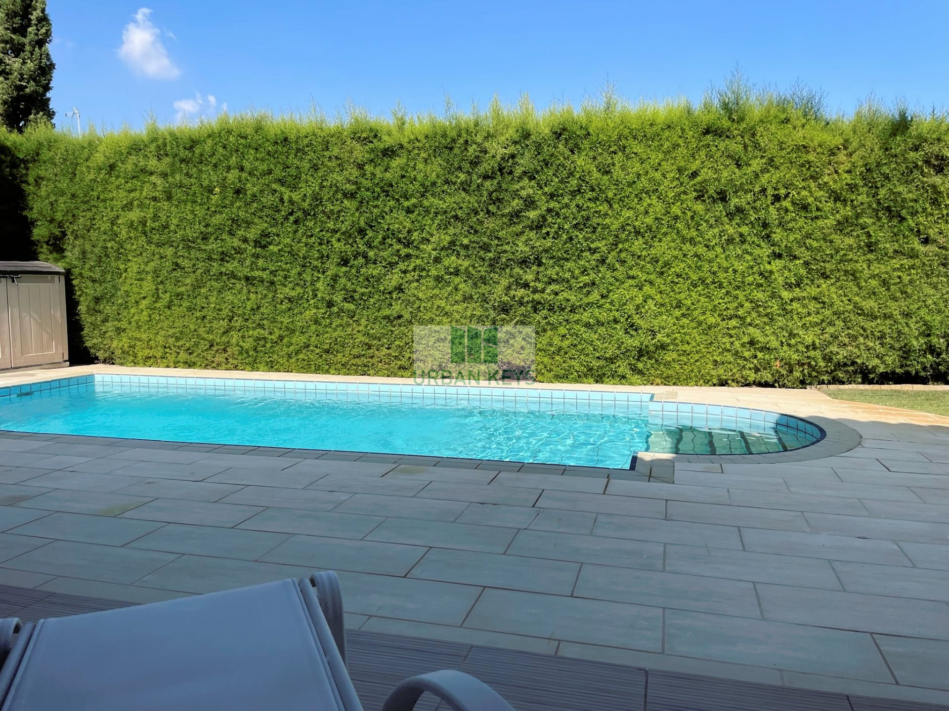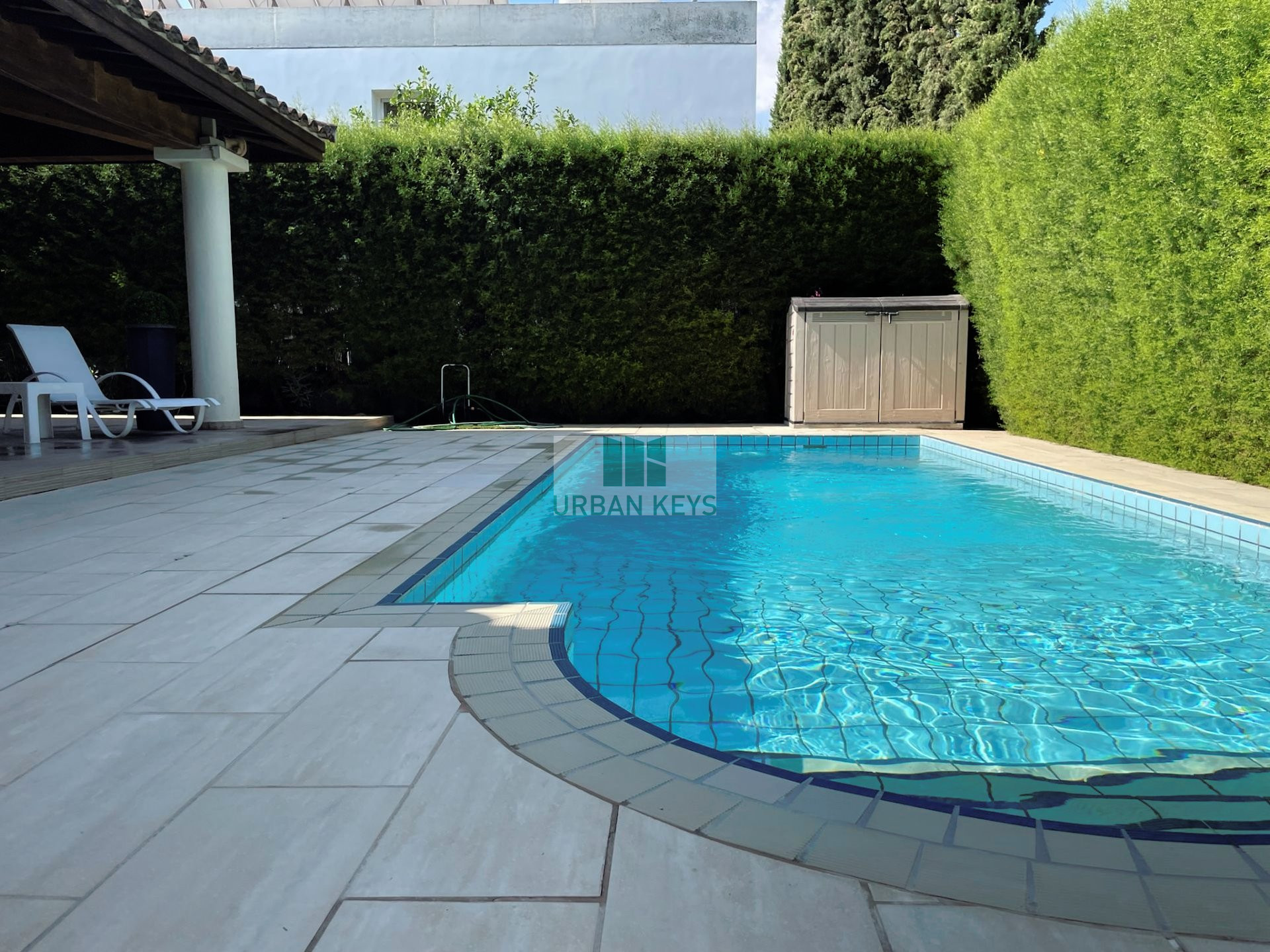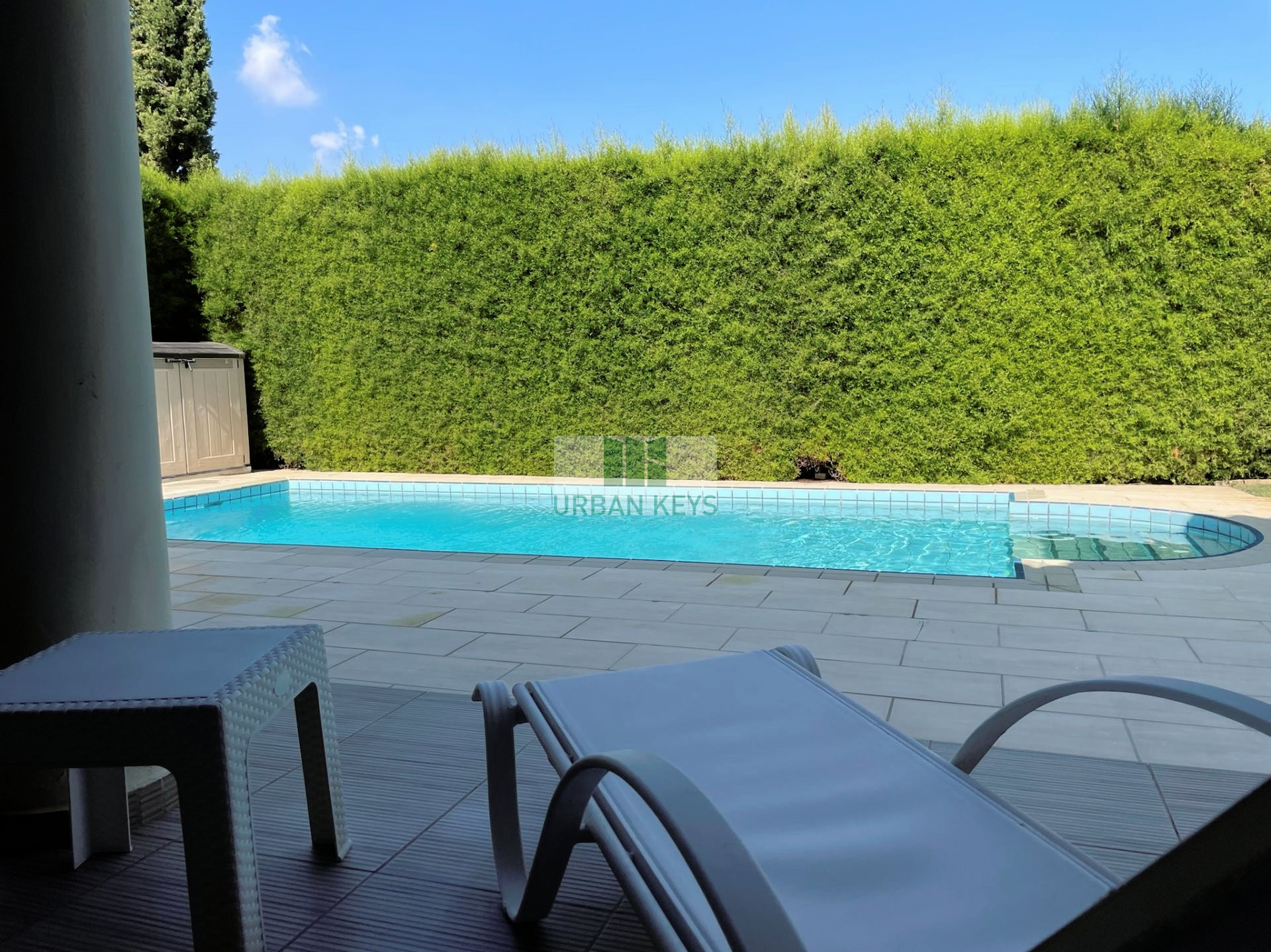 It opens up to a magnificent outside area, with big covered verandas, barbeque area, mature garden and swimming pool.