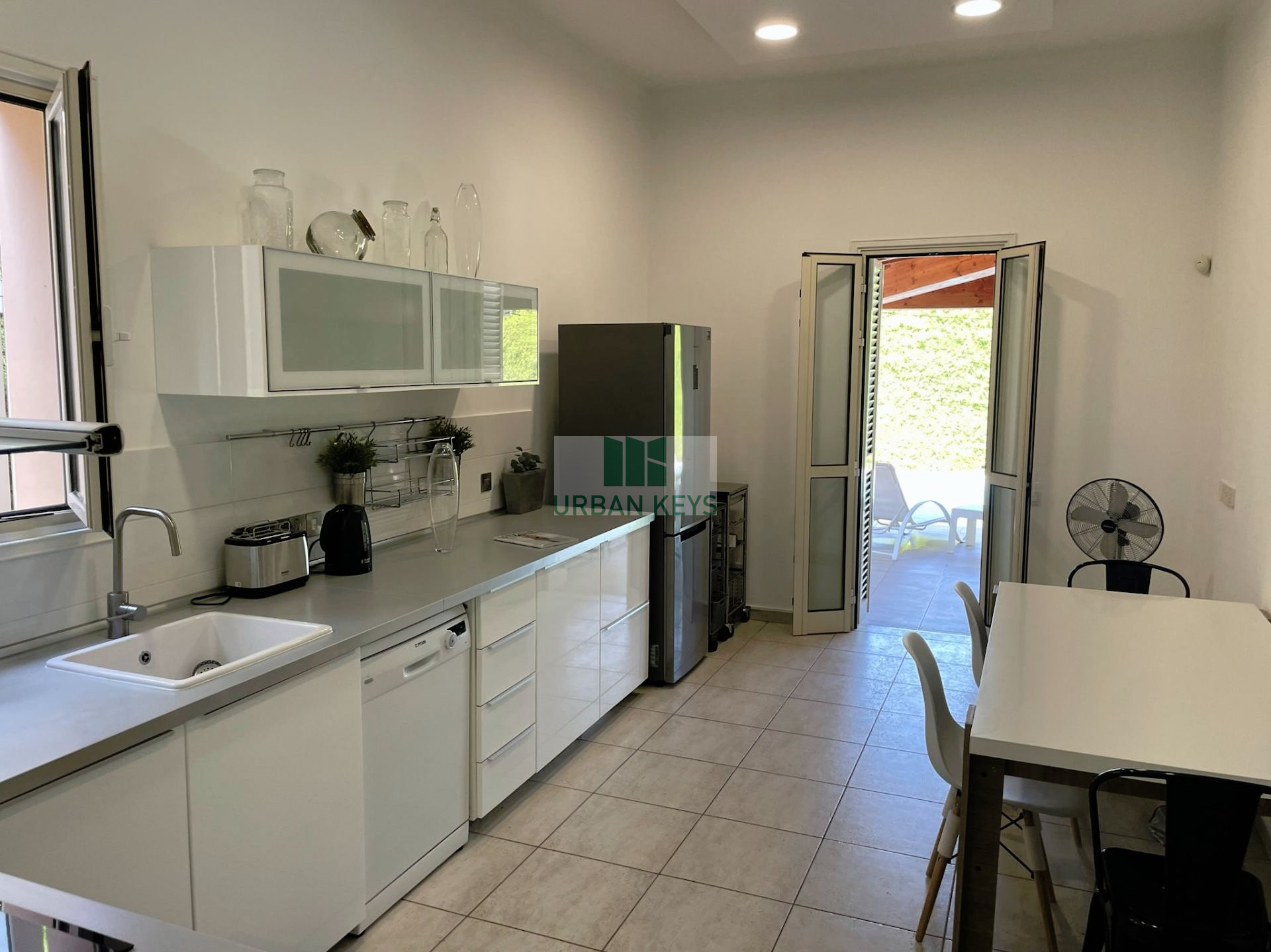 There is an extra kitchen , a storage place, a laundry room a. the whole property is constructed with high end materials