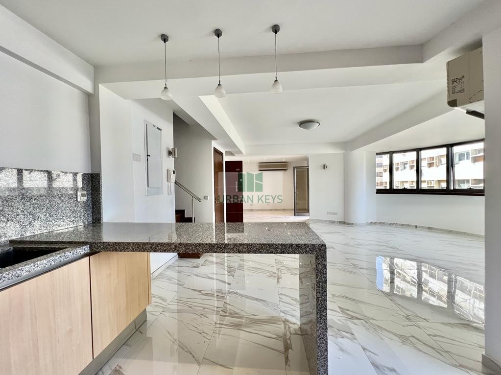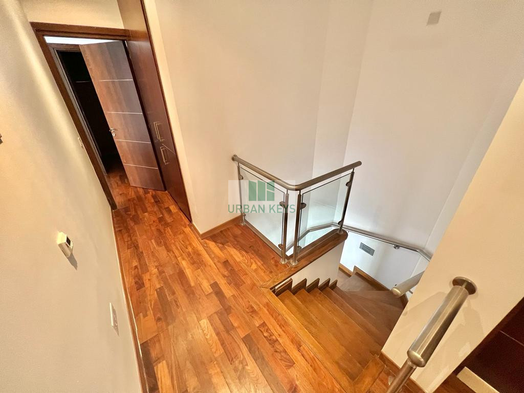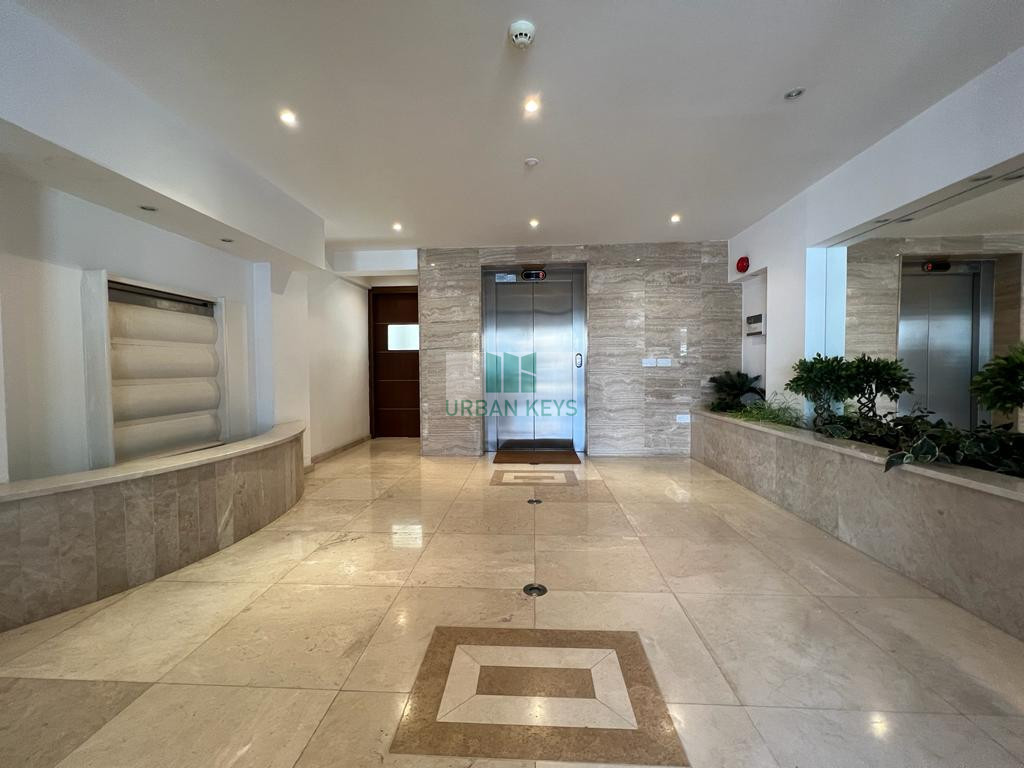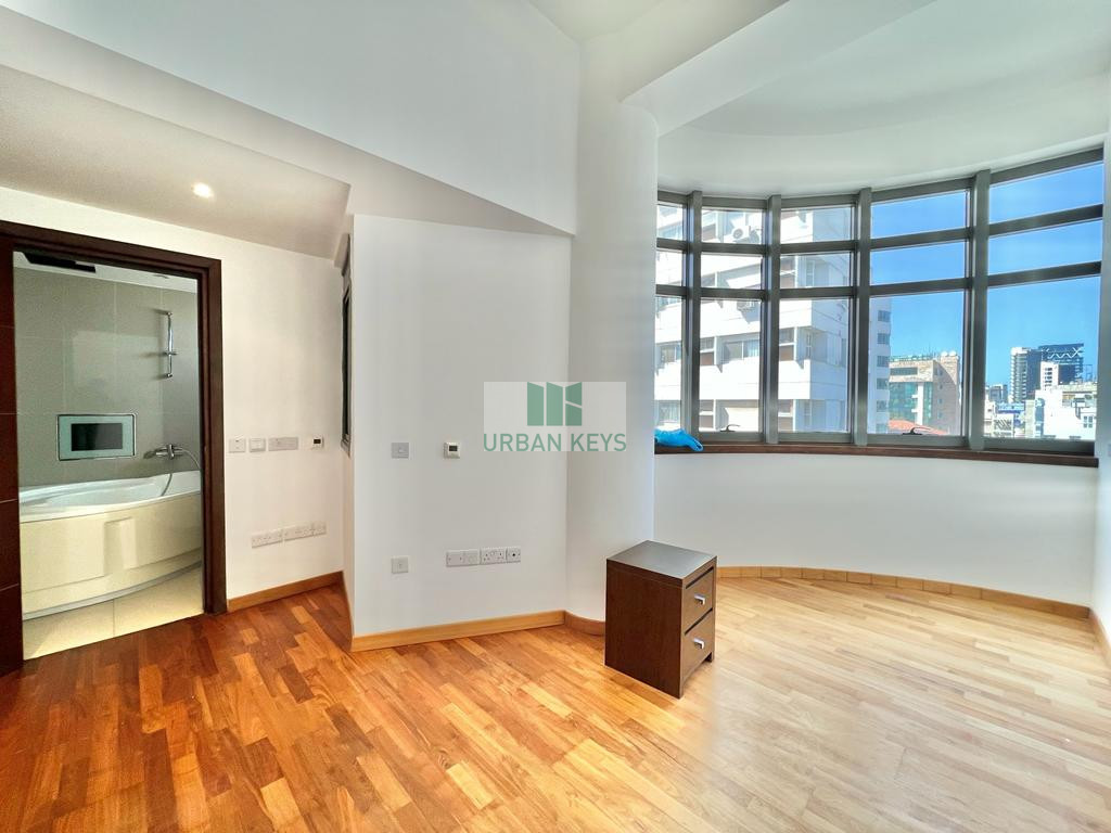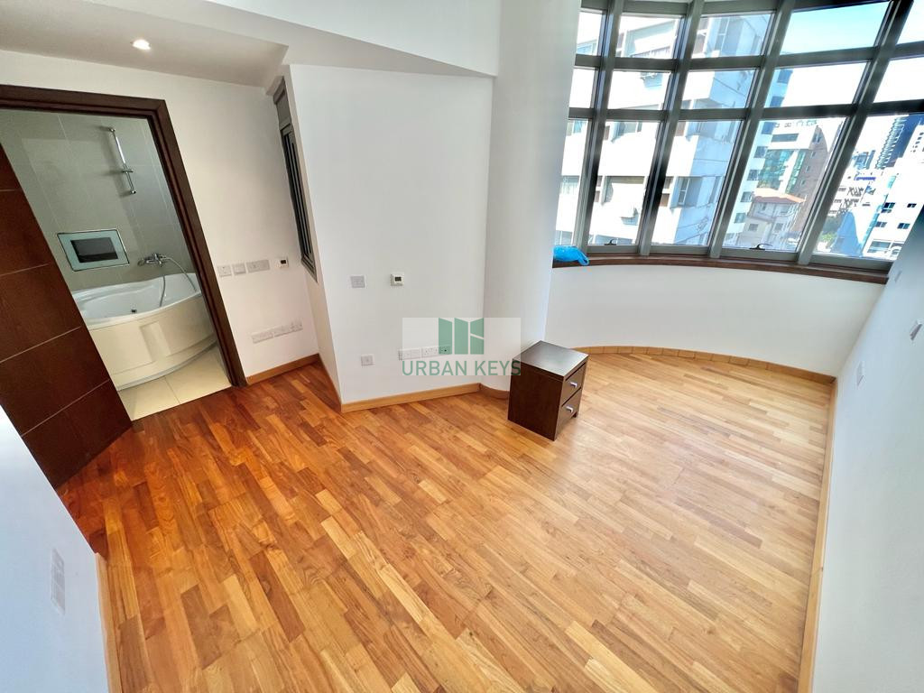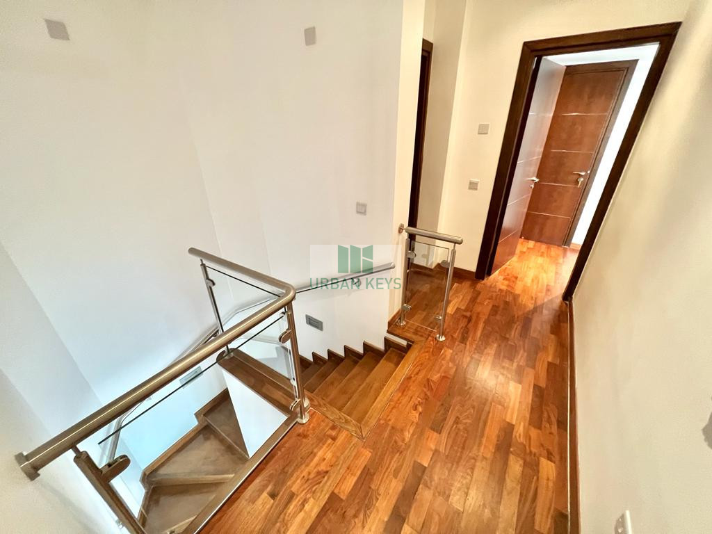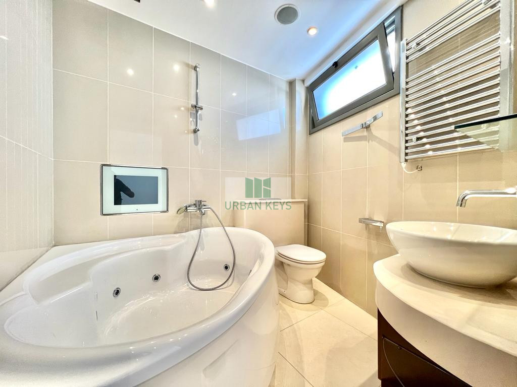For rent a spacious two-bedroom duplex apartment in the heart of the Town Center. The apartment is fully furnished and it features a bright living room, a modern kitchen, and two well-sized bedrooms both with en-suite jacuzzi.