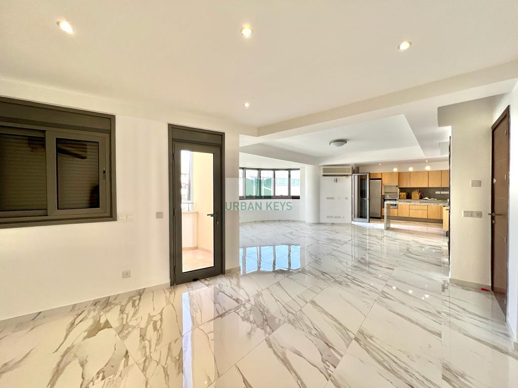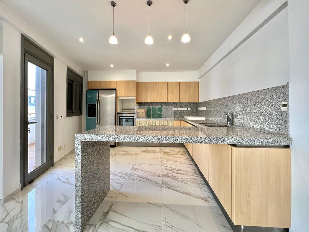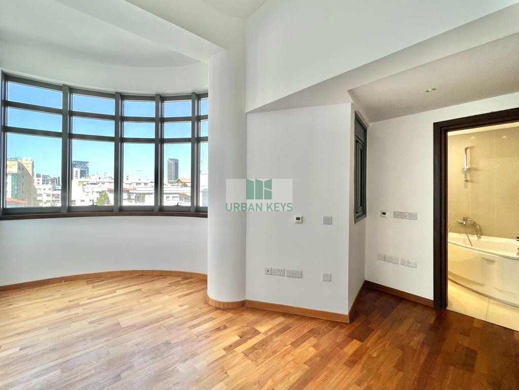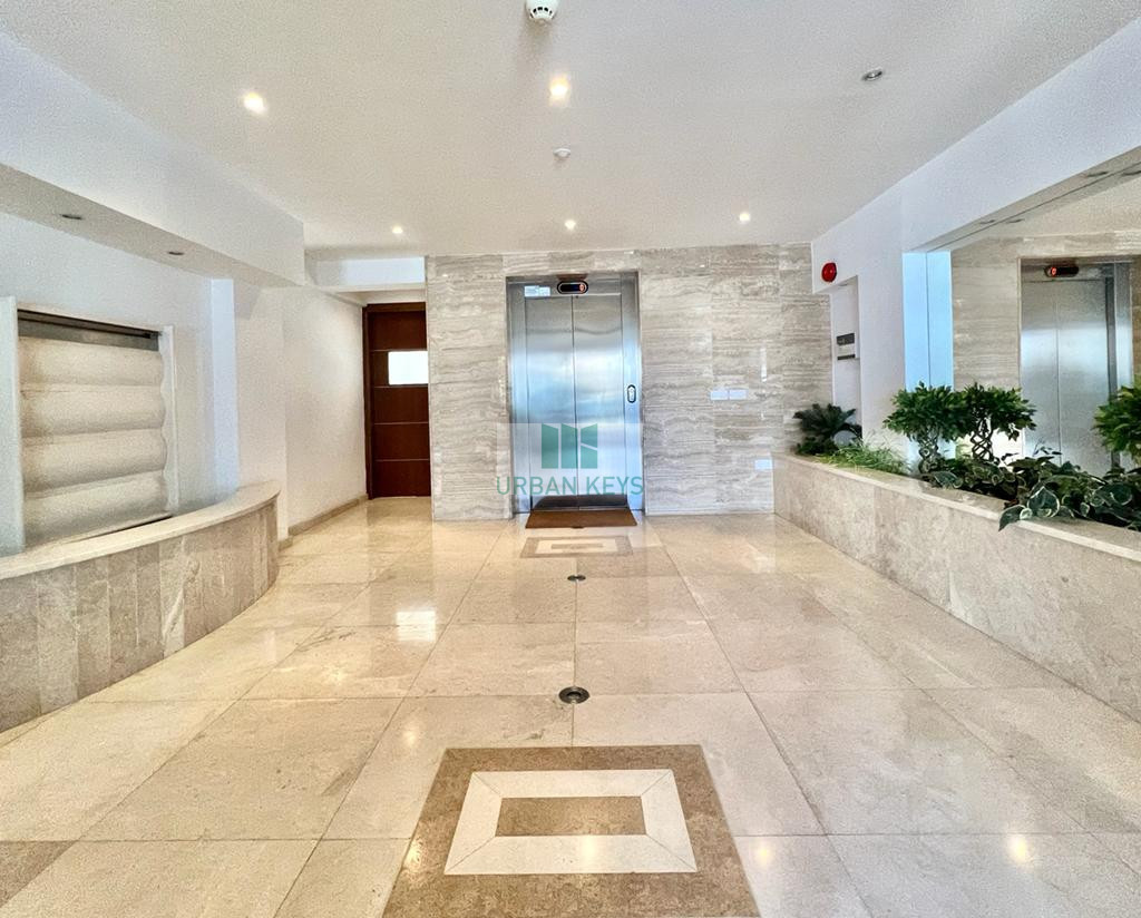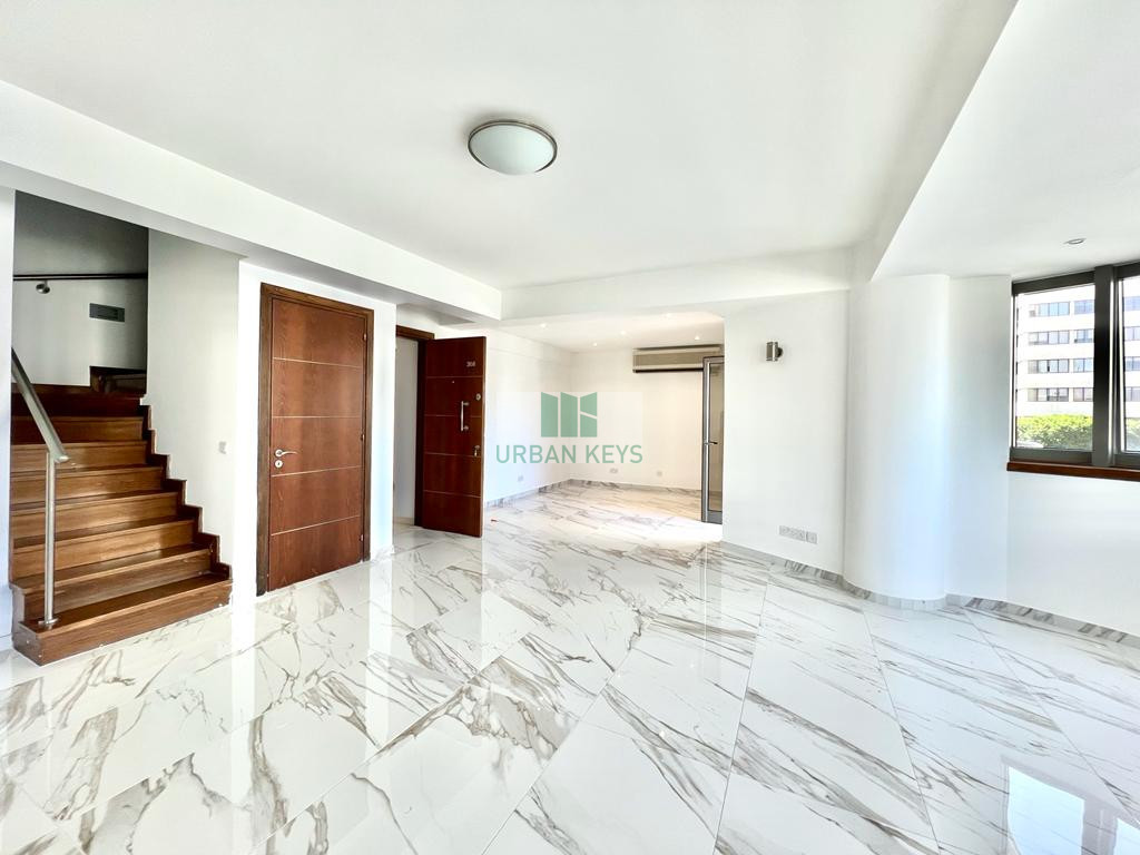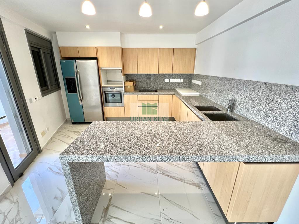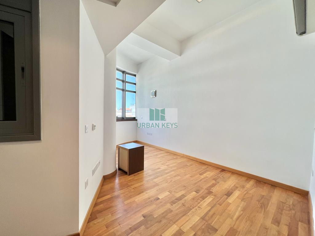 For rent a spacious two-bedroom duplex apartment in the heart of the Town Center. The apartment is fully furnished and it features a bright living room, a modern kitchen, and two well-sized bedrooms both with en-suite jacuzzi.