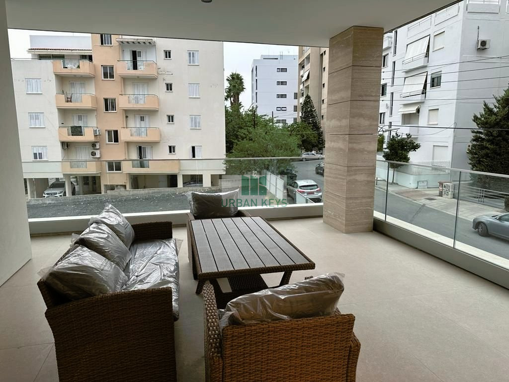Excellent opportunity for rent a brand new 2 bedroom flat within an exclusive development near Makariou Avenue. This development consists of 4 wholefloor new luxury apartments set over 4 floors. The building set in landscaped gardens, benefits from being close to local amenities of the city centre, being situated in the heart of Nicosia whilst also providing easy access to the highways. The apartment is finished to a very high standard including under floor heating and air conditioning units with the added benefit of secure allocated parking. The flat has an open plan layout, 2 bedrooms (master en-suite) and a common bathroom.The kitchen is fully fitted and ready to use, and it is equipped with the highest appliances, fittings and fixtures. All the surfaces are finished with the best quality finishes. Please contact our real estate agent for a private viewing.