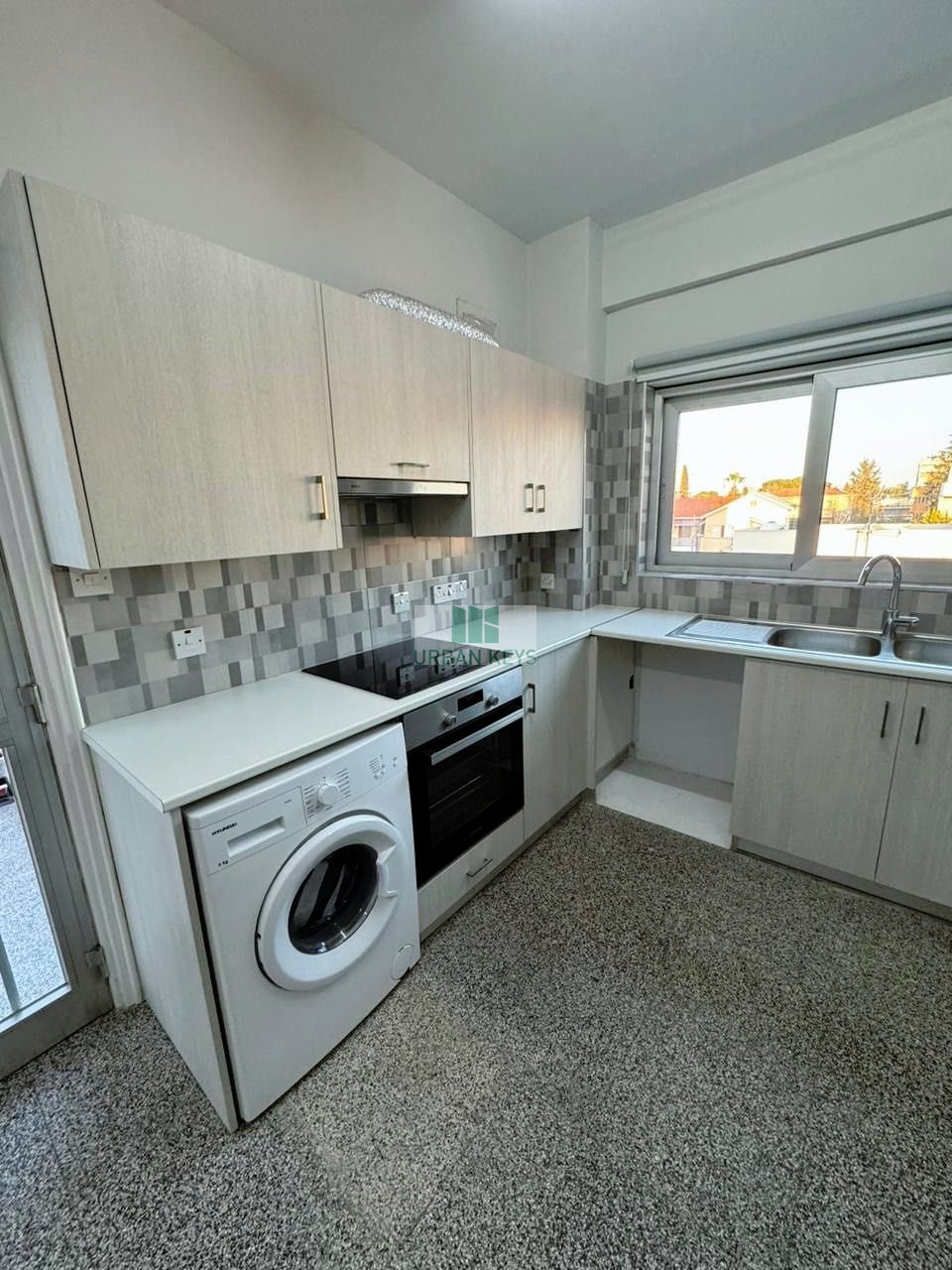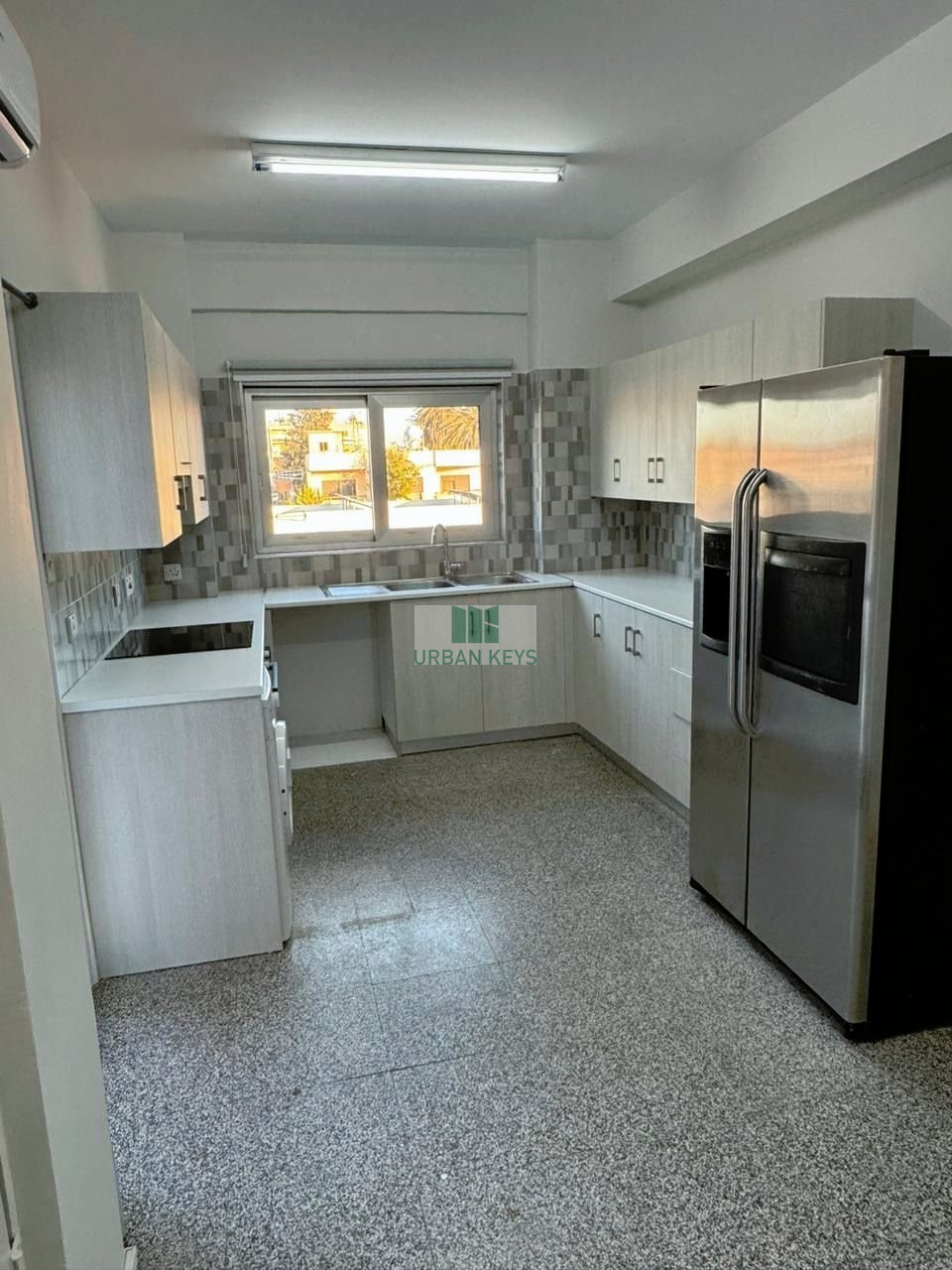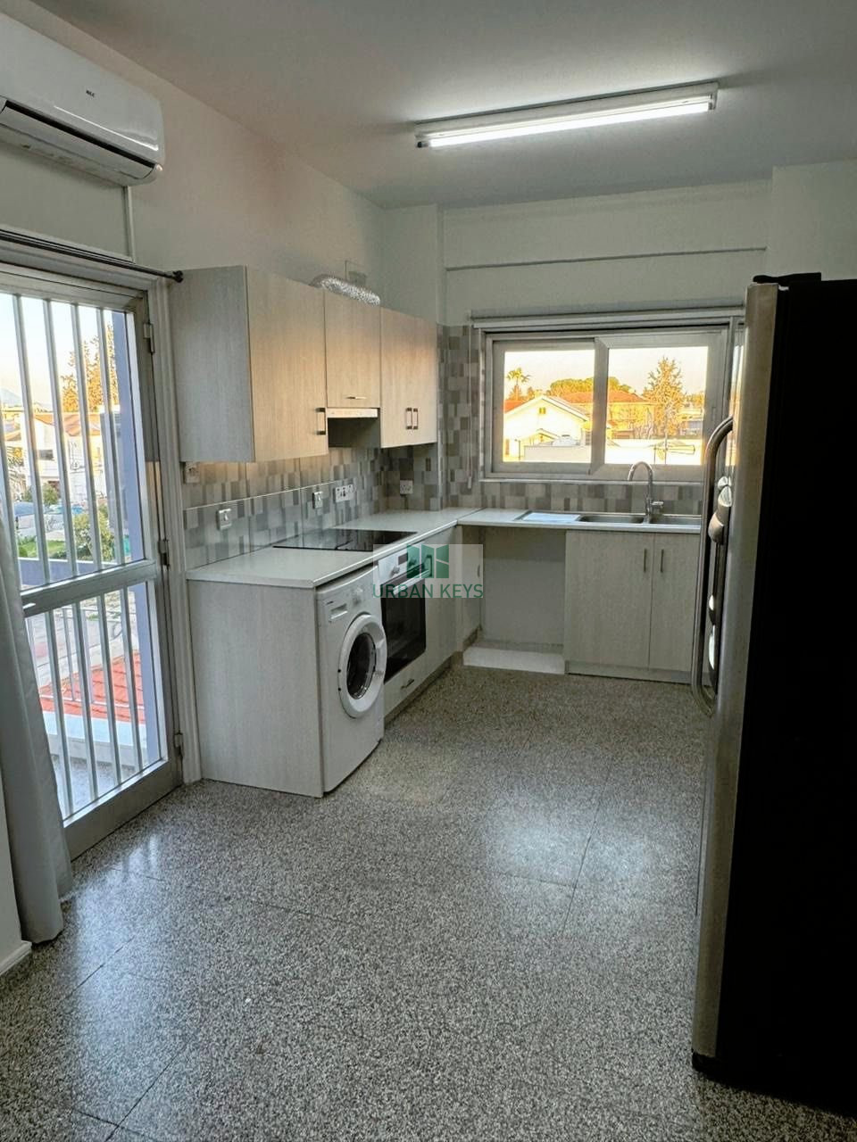 A two bedroom remodeled apartment with a large living room area and two balconies is available for rent. The apartment is located on the second floor and it includes brand new kitchen appliances, brand new aircondition split units in all rooms and brand new windows were installed. The building has elevator and being served with central heating. It is located close to many amenities supermarkets, schools, pharmacies etc.